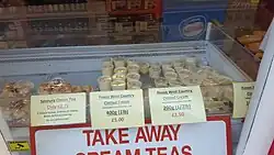Centred on The Strand, Queen Street, Brunswick Place and Park Road, Dawlish has typical retail facilities for a resort town with gift shops, cafes, a fishing tackle shop, beach/toy shops, bakeries, restaurants and pubs, haberdasheries, ice-cream shops including Gay's Creamery, national chains and independent retailers. Along Piermont Place, by Dawlish railway station and the seafront, are further ice-cream shops, a restaurant, a cafe and a sports-bar with outdoor seating areas. In recent years, a number of art, craft and antiques shops have opened. At the north-eastern end of the town there is a Sainsbury's supermarket with an Argos facility and a petrol station.