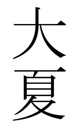Daxia, Ta-Hsia, or Ta-Hia (Chinese: 大夏; pinyin: Dàxià; literally: 'Great Xia') was apparently the name given in antiquity by the Han Chinese to Tukhara or Tokhara: the main part of Bactria, in what is now northern Afghanistan, and parts of southern Tajikistan and Uzbekistan.