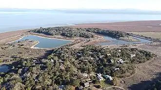 Day Island is an island at the mouth of the Petaluma River in San Pablo Bay (an embayment of San Francisco Bay).[3][4][5][6][7][8] It is part of Marin County, California.[9][10][11][12][13][14][15][16] Its coordinates are 38°06′13″N 122°29′26″W / 38.10361°N 122.49056°W[1], and the United States Geological Survey measured its elevation as 105 ft (32 m) in 1981.[1] It appears on a 1951 USGS map of the area, although it appears on maps from as old as 1873.[2] The "1880 History of Marin County" by Alley, Bowen and Co. mentions "a man by name of Day" who "settled on an island in Novato township which has since borne his name" in 1851." To this day, there are still 2 houses on the island, one inhabited and one abandoned. The island is bordered by dirt and two lagoons to the west, and marshlands to the east, although it was once entirely surrounded by either marshland or water.[17]
