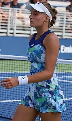 Dayana Oleksandrivna Yastremska (Ukrainian: Даяна Олександрівна Ястремська; born 15 May 2000) is a Ukrainian professional tennis player. She has been ranked as high as world No. 21 in singles by the WTA, and No. 82 in doubles, both achieved in January 2020. Yastremska has won three WTA Tour titles. Her best major performance is reaching the semifinals at the 2024 Australian Open.