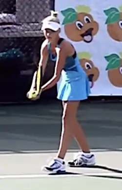 Yastremska had early success as a junior, finishing runner-up at the 12-and-under Junior Orange Bowl in 2012.[6] She made her debut on the ITF Junior Circuit in March 2014 at the age of 13. Towards the end of the year, she won her first title at a Grade 4 event in November. With this success, she moved up to playing higher-level tournaments more regularly. Yastremska reached a Grade 1 semifinal in July in Austria and won a Grade 2 title in August in Hungary. She made her debut at the highest-level Grade A tournaments in October, reaching the quarterfinals at the Osaka Mayor's Cup in Japan. She fared better in doubles, finishing runner-up to two Japanese players.[7][8]