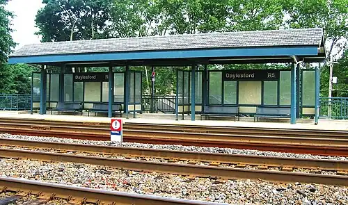 Daylesford station is a commuter rail station located in the western suburbs of Philadelphia at Glenn Avenue and Lancaster Avenue in Berwyn, Pennsylvania.[4] It is served by most Paoli/Thorndale Line trains.
