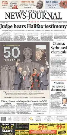 ![]() The August 29, 2013 front page of The Daytona Beach News-Journal | |