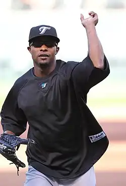 Larry DeWayne Wise (born February 24, 1978) is an American former professional baseball outfielder. He graduated from Chapin High School in 1997 and was selected by the Cincinnati Reds in the fifth round (158th overall) of the 1997 Major League Baseball draft.[1] He played in Major League Baseball (MLB) for the Toronto Blue Jays, Atlanta Braves, Cincinnati Reds, Chicago White Sox, Florida Marlins, and New York Yankees. He is best known for robbing Gabe Kapler of a home run to preserve Mark Buehrle's perfect game in 2009.[2]