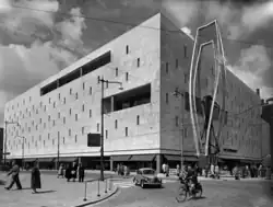 The Rotterdam store was heavily damaged in the German bombing of Rotterdam of 1940 after Nazi Germany invaded (and preceded the occupation of the country 1940–1945), which resulted in the near-total destruction of the city's historic centre. The intact part of the store remained open for business until 1957, but was cleared in 1960 to build the Rotterdam Metro. A new store was designed by Hungarian-American architect Marcel Breuer (1902–1981).