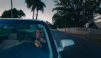 An accompanying music video was released on December 8, 2022. The visual was filmed in Carolina was directed by Martin Seipel. It depicts Alejandro celebrating his roots with a dynamic tour of his childhood streets, showcasing the local culture and daily life. The video features a heartfelt homage to the Puerto Rican baseball player Roberto Clemente, including a glimpse of his statue. The narrative follows the excitement of a typical day in the neighborhood, from a woman painting her nails red to boys cycling past domino players and basketball games. The day's casual encounters lead to an energetic block party, where Alejandro, joined by DJ Playero, delivers an electrifying performance that transforms into a spontaneous concert, drawing the community together in a festive culmination of hometown pride.[11][21]