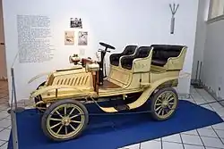 In 1900, the De Dion-Bouton Motorette Company began manufacturing De Dion-Bouton automobiles under license in Brooklyn, New York.[12] A small quantity of American De Dion Motorettes were made. They had either two-seater vis-a-vis or closed coachwork, and were powered by a 3.5 horsepower (2.6 kW) American-made engines.[13]