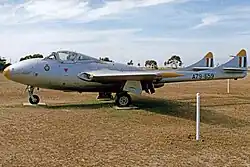 Mosquito production continued until 1948, by which time work had begun on DHA's third indigenous design, the DHA-3 Drover. On 29 June 1949, following selection of the type by the RAAF in 1946, the first of 190 licence-built DH.100 and DH.115 Vampires had its first flight with DHA's chief test pilot Brian "Black Jack" Walker at the controls. Production of the Vampire continued until 1960, the same year the parent company was purchased by Hawker Siddeley. At this time the company also entered the general aviation market when it became the Australian distributor for Beechcraft in 1959.[8] Following the absorption of de Havilland by Hawker Siddeley, DHA was renamed Hawker de Havilland (HdH) in 1965. In 1959 the de havilland marine division was formed.