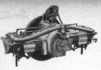 The design featured a horizontally opposed, four-cylinder layout with a single camshaft operating poppet valves through pushrods that were hollowed to save weight. The crankshaft was supported on ball bearings which allowed a simple 'splash' lubrication system to be used. Cooling was by water with the cylinders being encased in copper jackets. The engine ran adequately but was not placed into series production. A small order was received from the British Government for use in airships.[2]