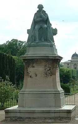Lamarck fought in the Seven Years' War against Prussia, and was awarded a commission for bravery on the battlefield.[4] Posted to Monaco, Lamarck became interested in natural history and resolved to study medicine.[5] He retired from the army after being injured in 1766, and returned to his medical studies.[5] Lamarck developed a particular interest in botany, and later, after he published the three-volume work Flore françoise (1778), he gained membership of the French Academy of Sciences in 1779. Lamarck became involved in the Jardin des Plantes and was appointed to the Chair of Botany in 1788. When the French National Assembly founded the Muséum national d'Histoire naturelle in 1793, Lamarck became a professor of zoology.