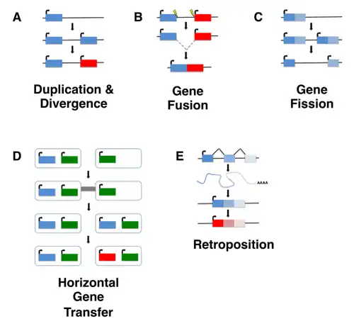 - ^ Chen S, Krinsky BH, Long M (September 2013). "New genes as drivers of phenotypic evolution". Nature Reviews Genetics. 14 (9): 645–60. doi:10.1038/nrg3521. PMC 4236023. PMID 23949544.