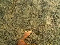 The Dead Sea's mineral composition varies with season, rainfall, depth of deposit, and ambient temperature. Most oceanic salt is approximately 85 wt.% sodium chloride (the same salt as table salt) while Dead Sea salt is only 30.5 wt.% of this, with the remainder composed of other dried minerals and salts. The extreme salinity of the Dead Sea is due to rapid evaporation and the absence of an outlet, leading to a high concentration of minerals such as magnesium, sodium, and potassium.[3] These minerals are continuously deposited as water evaporates, making the Dead Sea one of the saltiest bodies of water on Earth. The concentrations of the major ions present in the Dead Sea water are given in the following table:[1]