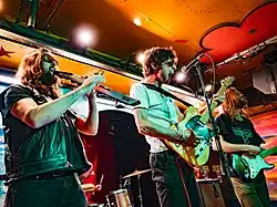 ![]() Dead Tooth performing in Brooklyn on February 2, 2025. Left to right: Taylor Mitchell, Michael Cohen, Zach James Ellis, John Stanesco, and James Duncan. | |