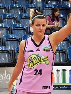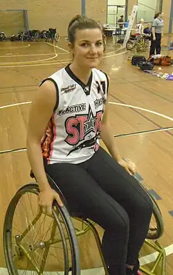 Smith played wheelchair basketball in the Women's National Wheelchair Basketball League (WNWBL) with the Be Active Western Stars in 2013,[29] and the Red Dust Lady Heelers in 2017.[30] She became the first player to play in both the WNBL and WNWBL, with each WNWBL team being permitted to field a limited number of able-bodied 4.5-point players.[31][32]