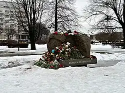 Russians began bringing flowers to monuments to victims of political repression in cities across the country.[88] Russian human rights group OVD-Info initially reported that by 17 February, more than 400 people had been detained by authorities in over 36 cities for taking part in the gatherings; the number was later corrected to 366 people.[89][90] Among those arrested was a priest who intended to hold a mass for Navalny and subsequently suffered a stroke while in police custody.[90][91] In some cities, flowers were removed and the police took photos of people laying flowers in memory of Navalny.[92][93] People laid flowers at Moscow's Solovetsky Stone and the Wall of Grief.[94] The Moscow Prosecutor's Office warned Russians against mass protests.[95] In Saint Petersburg alone, 154 people were sentenced to 14 days' imprisonment for violating anti-protest laws.[96] At least six of them were reportedly issued military draft notices upon their release.[97] Russian digital map company 2GIS reportedly blocked reviews of memorial sites after people used the service to write about memorials for Navalny.[98]