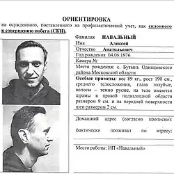 ![]() Prison registration card of Alexei Navalny in the Matrosskaya Tishina detention centre, where he was held in early 2021 before his transfer to a penal colony | |