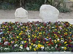 Sharon was buried next to his wife, Lily, on the family ranch, Havat Shikmim (Sycamore Ranch) in the Negev Desert. According to author Izzeldin Abuelaish, the Palestinian village of Houg was located there before the establishment of the State of Israel.[10] The property was purchased by Sharon in 1972, who established a 1,000 acre sheep farm there.[11]