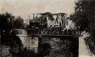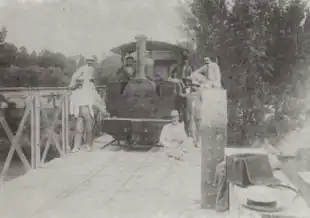 The 8.3 kilometres (5.2 mi) long Decauville railway with rails weighing 9,5 kg/m (19 lbs/yard) ran over two metal bridges, of which one was designed Gustave Eiffel and erected by Fives-Lille.[2][1] The track on the site of the sugar mill was 172 metres (564 ft) long. It ended at a turntable at the western end of the site.[3]