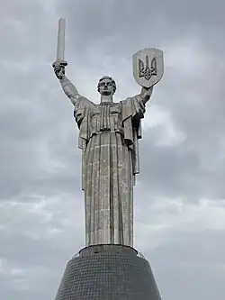 "Culture Ministry: Work begins to replace Soviet symbols on Motherland Monument". The Kyiv Independent. 30 July 2023. Retrieved 3 August 2023. - ^ Court, Elsa (1 August 2023). "Soviet coat of arms removed from Kyiv's Motherland Monument". Reuters.