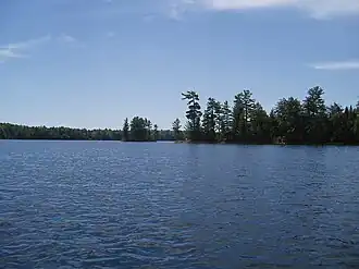 Deer Island Lake is a lake located in Gogebic County in the U.S. state of Michigan. The Lake is one of about 24 clear, clean lakes located in a special wilderness area known as the Sylvania Wilderness, which in turn is located within the Ottawa National Forest a few miles (6 to 8 km) to the west of the town of Watersmeet. The shoreline is completely undeveloped, and surrounded by virgin forest consisting mainly of hemlock and pine. This crystal-clear spring-fed lake is one of the most remote in the Sylvania Tract, but is well worth the journey for those intrepid enough to make it. The total surface area of the lake is 346 acres (1.4 km2), with maximum depths of 55 ft (17 m). The lake is named for the very large island in the center of the lake, which deer inhabit by crossing back and forth on the ice in winter. Several smaller islands and numerous rocky shoals add to the overall beauty of this fine body of water.