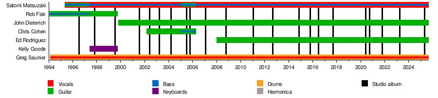 Deerhoof is an American musical group formed in San Francisco in 1994. It consists of founding drummer Greg Saunier, bassist and singer Satomi Matsuzaki, and guitarists John Dieterich and Ed Rodriguez. Beginning as an improvised noise punk band, Deerhoof became widely renowned and influential in the 2000s through its self-produced albums.[1]