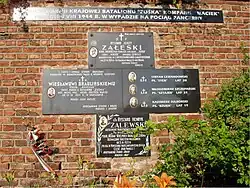 The participation of the Radosław Group in the battles fought in August 1944 in the Wola district has been commemorated by nine memorial plaques or boulders:[116]