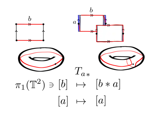 where [x] are the homotopy classes of the closed curve x in the torus. Notice and , where is the path travelled around b then a.