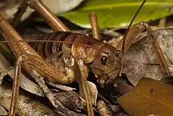 Deinacrida fallai or the Poor Knights giant wētā is a species of insect in the family Anostostomatidae.[2] It is endemic to the Poor Knights Islands off northern New Zealand.[2] D. fallai are commonly called giant wētā due to their large size.[2] They are one of the largest insects in the world, with a body length measuring up to 73 mm.[2] Their size is an example of island gigantism.[3] They are classified as vulnerable by the IUCN due to their restricted distribution.[4]