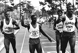 On May 16, 1987 (while the Metro Conference baseball and track championships were being played simultaneously in Columbia, South Carolina), Sanders played in the conference semifinal baseball game against Southern Mississippi, ran a leg of a 4 × 100 relay, then returned to play in the baseball championship game against Cincinnati.[5] Though Sanders' relay team did not place in the event, the FSU track team was the overall conference champion, and the baseball team won the conference title as well.