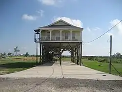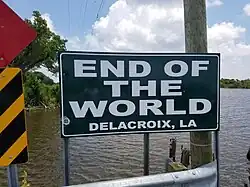 To the original Isleño inhabitants of Delacroix, the dead end of Louisiana Highway 300 (LA 300) was locally known as El fin del Mundo (The end of the World).[7] Various markers have been installed at the "End of the World" as well as other signage using this phrase but these signs have been consistently replaced due to storm damage or vandalism.[23][22] An annual cycling event known as the Tour da Parish takes off from Los Isleños Museum and Historic Village in Saint Bernard and ends at "The End of the World" in Delacroix.[22][27]