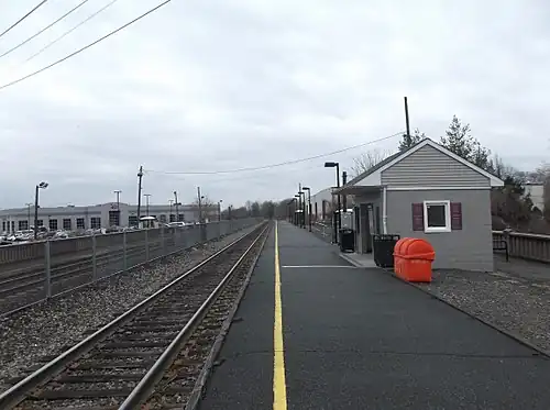 Delawanna is a commuter rail station for New Jersey Transit in the Delawanna section of Clifton, Passaic County, New Jersey. The station, located at the intersection of Delawanna Avenue (Passaic County Route 610) and Oak Street (Passaic County Route 605), serves trains on New Jersey Transit's Main Line, serving Hoboken Terminal on the east end and Suffern and Port Jervis stations on the west end in New York. Delawanna station has two low-level side platforms with a shelter on the inbound side, lacking access for the physically disabled under the Americans With Disabilities Act of 1990.