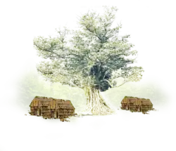 While not delaying, people started clearing the nearby wild shrubs, now it was clear that all of them could make their own huts. Cutting the wood of woods, using tad and banana leaves, all the people broke up and made huts for their living. It was dark.