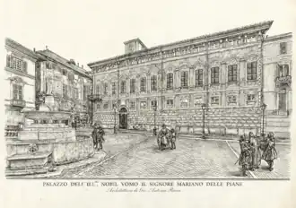 There were many prominent figures in this troubled historic period, and the Delle Piane family also had many palaces and villas in this age.[44] Antonio, who officially received Victor Emanuel I, king of Sardinia, in 1814 and then Pope Pius VII in 1815, both on visits to Genoa, possessed the monumental complex, abbey, monastery and adjoining lands of San Nicolò del Boschetto in Rivarolo; the neighbouring Palazzo Cattaneo Delle Piane, built in the 16th century, surrounded by vast lands; and the Palazzo Veneroso in Genoa.[45]