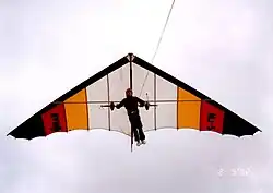 Also in 1909, British aeronautical pioneer J. W. Dunne patented his tailless stable aircraft with conical wing development. The patent included a broad-span biconical delta, with each side bulging upwards towards the rear in a manner characteristic of the modern Rogallo wing.[20] During the following year, in America U. G. Lee and W. A. Darrah patented a similar biconical delta winged aeroplane with an explicitly rigid wing. It also incorporated a proposal for a flight control system and covered both gliding and powered flight.[21][22] None of these early designs is known to have successfully flown although, in 1904, Lavezzani's hang glider featuring independent left and right triangular wings had left the ground, and Dunne's other tailless swept designs based on the same principle would fly.[21]