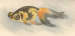 The telescope, telescope goldfish or telescope eye (Chinese: 出目金; pinyin: Chū mù jīn) is a goldfish characterised by its protruding eyes.[1][2][3] It was first developed in the early 1700s in China, where the trait was referred to as dragon eyes.