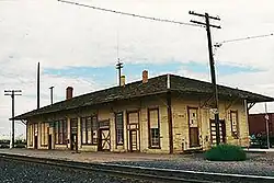In March 1881, the second transcontinental railroad, uniting the Atchison, Topeka, and Santa Fe Railway from the east with the Southern Pacific Railway from the west, was completed at Deming. To mark the occasion, a silver spike was driven to connect the rails. Deming subsequently received a large two-story "union depot" that in 1930 was remodeled into a one-story structure.[2]