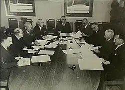 The Australian War Cabinet approved the Department of Post-War Reconstruction's proposed principles to govern demobilisation on 12 June 1944. The key element of the principles was that the order in which personnel would be demobilised was to be based on a points system, with service men and women being allocated points on the basis of their period of service, age, marital status and employment or training prospects.[4] An extensive demobilisation plan was then developed by an interservice committee following further consultation with trade unions, employers and returned servicemen. The plan was accepted as the basis for planning by the War Cabinet on 6 March 1945.[5] The rate at which personnel were to be discharged was set at 3,000 a day for six days a week and was to be capable of being increased in the event of an emergency.[4]