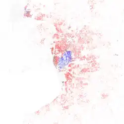 Buffalo has very sizable populations of Bosnian, Irish, Italian, Polish, German, Hungarian, Jewish, Greek, Arab, African American, Indian, Macedonian, and Puerto Rican descent. Major ethnic neighborhoods still exist but they changed significantly in the second half of the 20th century. In 1940, non-Hispanic Whites were 96.8% of the city's population.[9] In the early 1900s, Polish-American immigrants were the predominant occupants of the East Side, while Italian-Americans composed a close-knit neighborhood in the west side. The East Side has long since become a predominantly African American area, while the West Side has become a melting pot of many ethnicities, with Latino culture being the strongest influence. Throughout the history of Buffalo, the neighborhoods collectively called the First Ward, as well as much of South Buffalo, have comprised almost entirely people of Irish descent. Recently, there has been an influx of inhabitants that are of Arab descent, mainly from Yemen, as the city's Muslim population has increased to approximately 3000 according to an estimate.[16] Since the 1950s and 1960s, the greater portion of the Jewish population has moved to the suburban areas outside of the city, or to the city's upper West Side.