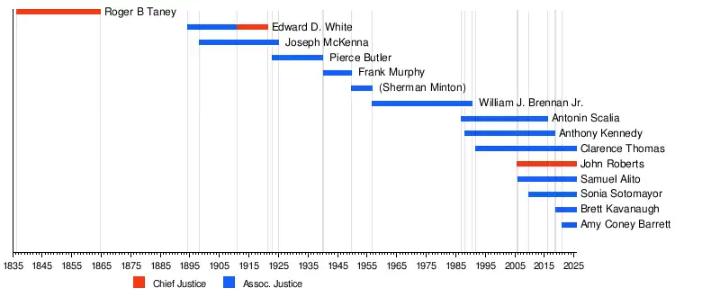- ^ Bialik, Kristen; Gramlich, John (April 14, 2024). "Younger Supreme Court appointees stay on the bench longer, but there are plenty of exceptions". Pew Research Center. Retrieved September 22, 2024.
