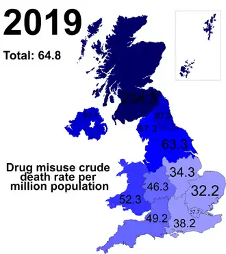 | Scotland | 5,466,000 | 77,911 (30,082) | 70 (181) | ||