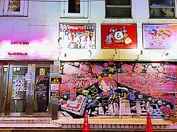 In December 2007, producer Maiko Fukushima opened the live house/bar "DearStage" in the basement of a building near the Suehirocho Station,[2] and moved it to the DEMPA Building (DEMPAビル, DEMPABiru) in September 2008.[3][4] In December 2008,[5][6] DearStage salespeople Mirin Furukawa and Akari Owada formed the original Denpagumi (でんぱ組, Denpagumi)[4][7] and released the single "Mirror Magic?" through an indie label.[8][9] Fukushima said of the unit's name: "I wanted to give it a retrotic name like Ushiroyubi Sasaregumi."[10] Also, Kenzō Saeki and Masaya Koike, who participated in the naming conference at the time, said that the part of "Dempa" was taken from the Dempa Building.[11]