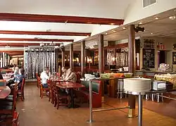 Today's restaurant is located on the ground floor of Hellgrenska Palace and was built in 1866. On the façade there is the classic flag sign with a green clad hunter with his gun.[2] The building previously housed the nobleman's apartments, where Oscar II also drank. For many years the restaurant Norma was located in the premises. The facade now features the classic flag sign showing a green-clad hunter with a gun. Den Gröne Jägaren underwent an extensive renovation in 2019.