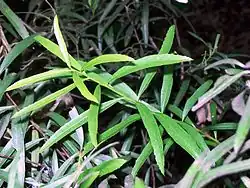 Denhamia silvestris is a shrub or small tree growing from Picton, New South Wales (34° S) to Kroombit Tops, near Gladstone, Queensland (23° S). It occurs in dry rainforest, eucalyptus and rainforest ecotone areas. Common names include narrow leaved orangebark, orange bush and orange bark.[2]