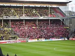 Sweden fans (in yellow) and Denmark fans (in red) during a clash in 2009. | |