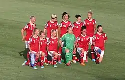 Denmark have qualified four times for the FIFA Women's World Cup and nine times for the UEFA Women's Championship. The team's greatest official accomplishment to date was winning silver at the UEFA Women's Euro 2017, where they lost to the Netherlands.[8] In the UEFA Women's Euro 2013, Denmark beat France to reach the semi-finals, where they lost on penalties to Norway.[9][10][11]