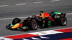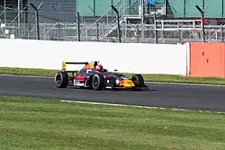 Hauger secured his best qualifying yet in Baku with third position. He crashed out of the Sprint Race when he suffered a huge lock up and ran nose first into the wall, but he redeemed himself by winning his first Feature Race the next day.[39] He qualified 12th in Silverstone and finished in 15th place in the Sprint Race. He retired in the Feature Race after a collision with Roy Nissany.[40][41][42] In Austria, he qualified in 15th position, but managed to finish 9th in the Sprint Race. He began the Feature Race on slick tyres which saw him pass multiple drivers who were on wets as the track dried; he eventually finished fourth after a string of drivers received penalties.[43]