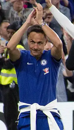 With new manager Claudio Ranieri seeking to lower the average age of the Chelsea squad, he was sold to Leicester City on 25 June 2001 for £1.6 million.[12][33] His time at Stamford Bridge would span 11 years, from 1990 to 2001 and when he finally left Chelsea, the combative midfielder finished with the fourth most appearances in the club's history, featuring 445 times and scoring 76 goals.[12]