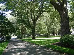 Denny Park is Seattle's oldest park. In 1861 pioneer David Denny donated the land to the city as Seattle Cemetery. In 1883, the graves were removed and the cemetery was converted to a park, the city's first. By 1904, the surrounding area had become residential, and the park was improved with formally designed planting beds, swings and other play equipment, a sand lot and a play field. The Denny School, an elementary school, stood slightly southeast of the park from 1884 to 1928.[1] Children were, from the earliest, regular users of the park.
