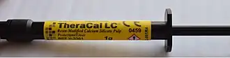 ^Karadas M, Cantekin K, Gumus H, Ateş SM, Duymuş ZY (September 2016). "Evaluation of the bond strength of different adhesive agents to a resin-modified calcium silicate material (TheraCal LC)". Scanning. 38 (5): 403–411. doi:10.1002/sca.21284. PMID26553783.