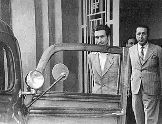 - ^ Except for a thin moustache, the ranking man on the right resembles Argentine president Juan Perón, who secured Nazi ratlines in his country.[19]